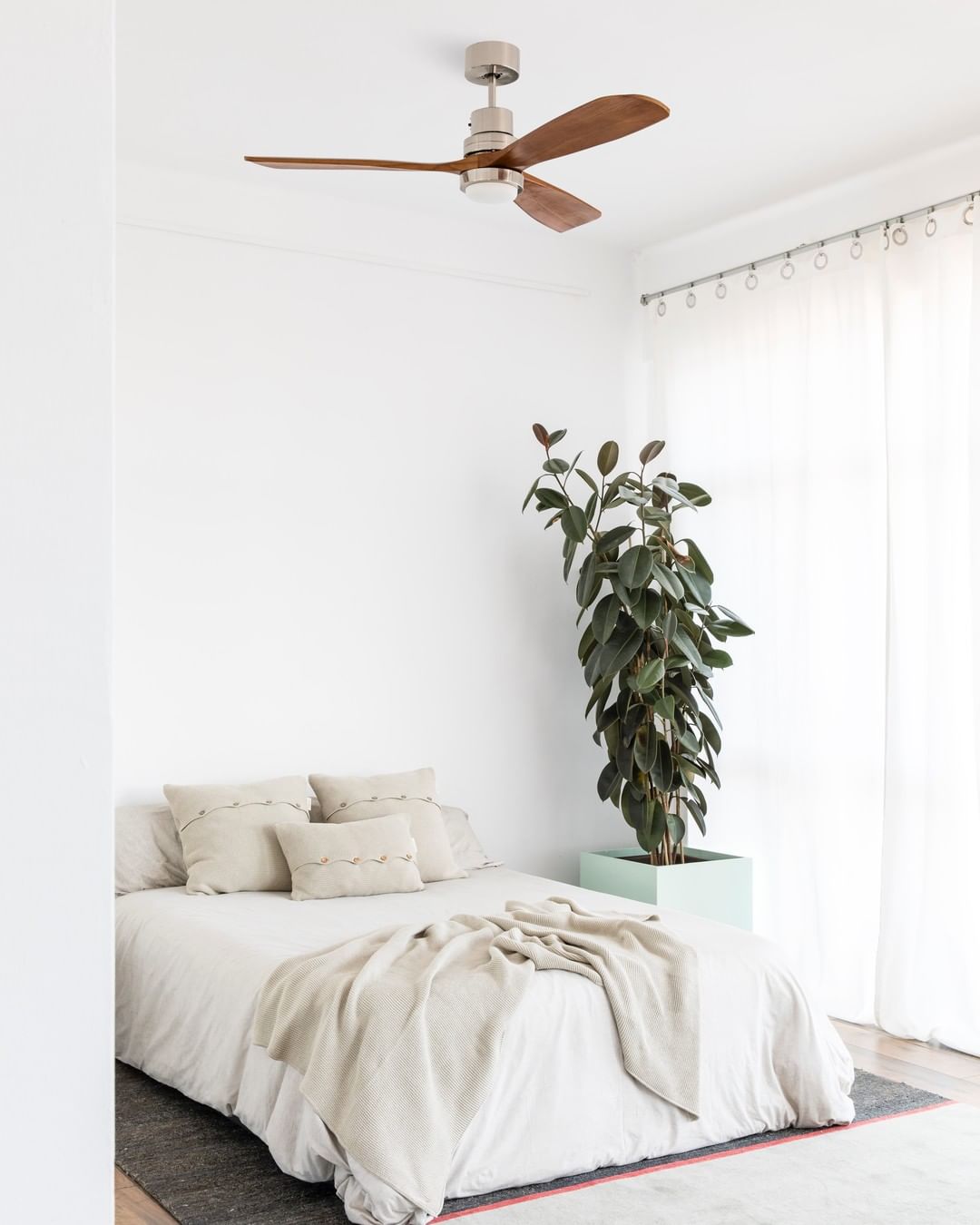Los ventiladores de techo para dormitorios, son cada vez mas usuales, porque este tipo de habitaciones al estar destinadas al descanso y relajación, se complementan con piezas que sean comodas, combinables y que aporten bienestar al usuario, es decir, que sean funcionales, cuyas características son cumplidas en su totalidad por los abanicos de techo.