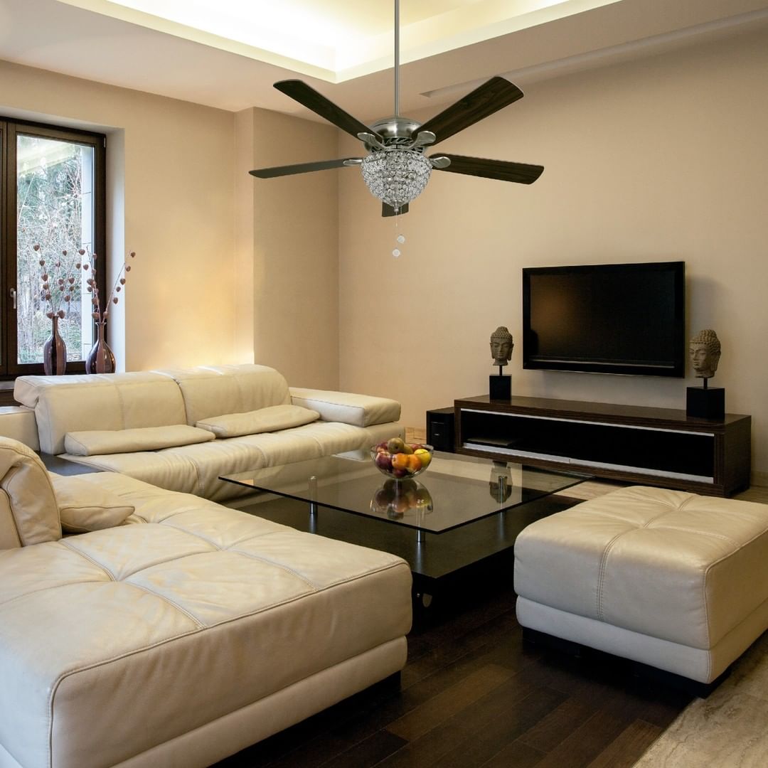 La sala es un lugar de reunión y convivencia con nuestros seres queridos, y es justo por esta razón, que la idea de colocar un ventilador de techo es perfecta, pues además de embellecer el diseño de la habitación, aportará la frescura durante la temporada de calor y calidez en las epocas frías del año.