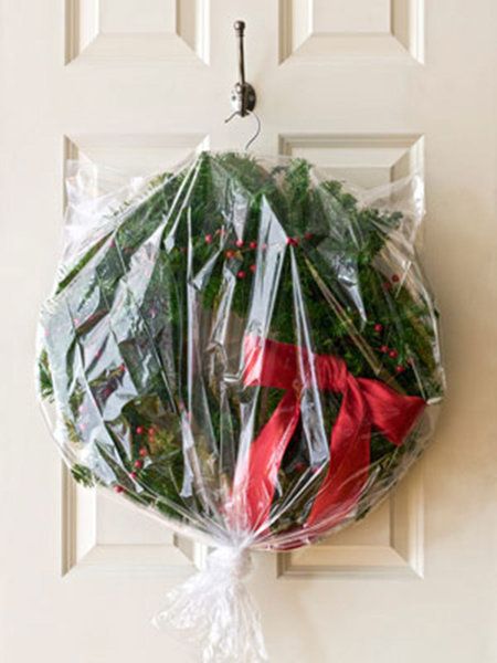Dentro de las alternativas para guardar las coronas navideñas destacan las bolsas de plástico, pues se amoldan a la forma y tamaño del adorno con elaborar un simple nudo. Aparte, el polvo y la deformación no serán una preocupación y con la ayuda de un gancho para la ropa se podrá colgar fácilmente.
