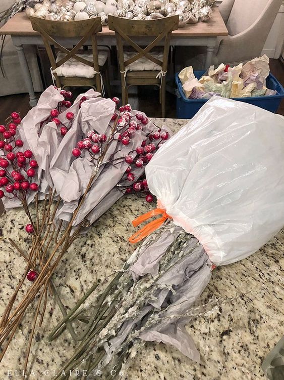 Cubrir con papel periódico o papel craft los ramos y ramilletes, impedirá que se quiebren o suelten el brillo o detalle que los hace resaltar. ¡no dudes en utilizarlo para que tus adornos navideños estén en óptimas condiciones!