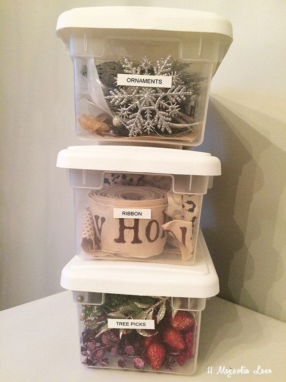 No podiamos finalizar el post sin mencionar las ideas para guardar los adornos navideños, como son las mallas decorativas, las coronas navideñas, las flores, las ramas, los ramilletes, los elementos cerámicos, listones y demás accesorios que son utilizados para decorar durante la época de navidad.