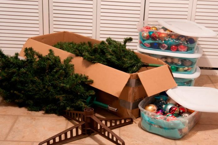Las cajas de cartón siempre son una buena alternativa para almacenar cualquier cosa, por esa razón no podían faltar en esta lista especial de ideas para guardar el árbol de navidad, solo presta atención a la hora de cerrarla, dado que tienen que quedar bien sellada, para evitar que entren animalitos (te recomendamos utilizar cinta adhesiva gruesa).