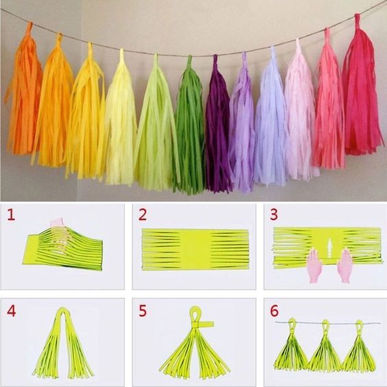 Hacer flores de papel para decorar también es una buena idea, que al igual de los pompones se ven hermosas. Para hacer estas manualidades ocupas tener a la mano papel, hilo y tijeras.