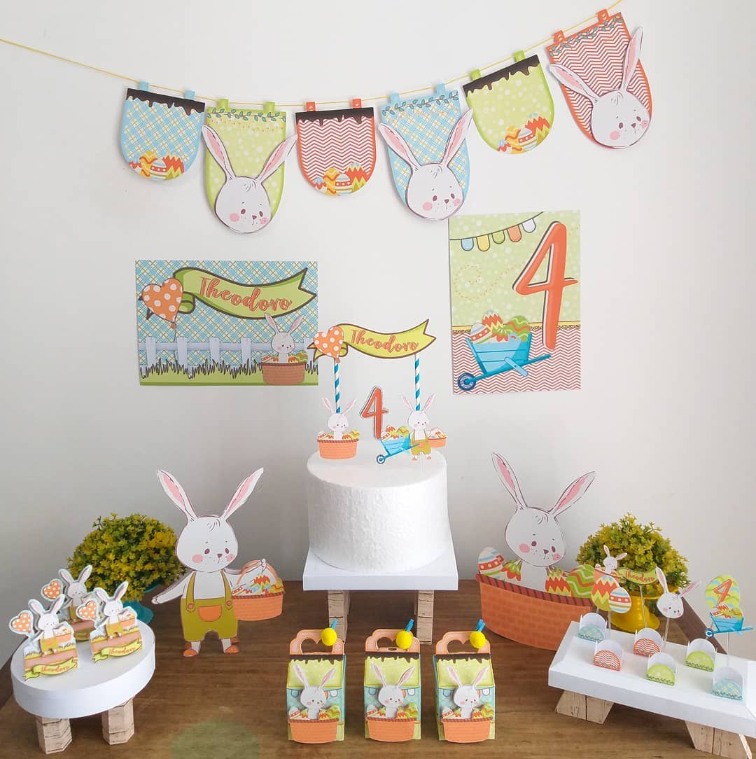 Otro de los temas que te quiero presentar es el de fiesta de conejitos, y si a tu hijo le encantan estos animalitos, pues ya no lo pienses tanto y decora tu casa con las ideas de la siguiente imagen.