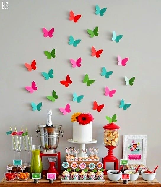 Si te encantan las manualidades, puedes intentar hacer estas decoraciones para una fiesta de mariposas en casa, solo dibuja o busca un molde en la web y empieza a recortar estos animalitos para decorar la mesa del pastel.