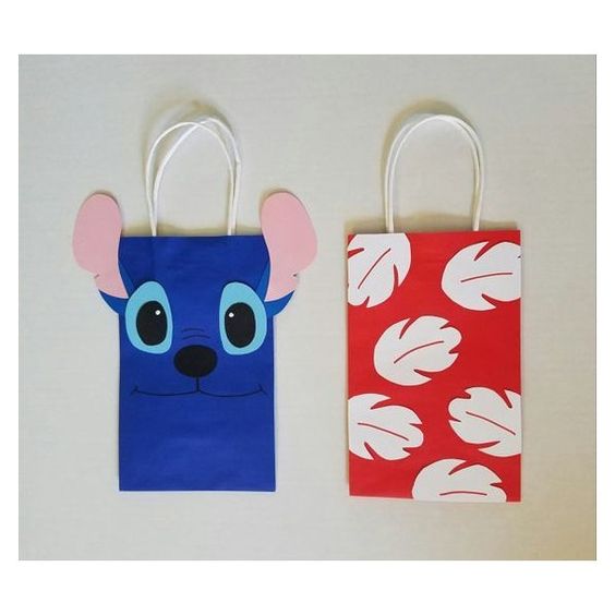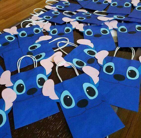 Dicho lo anterior, te compartimos algunos dulceros de Stitch fabricados con bolsas de papel, que ademas de fáciles de hacer, son ecónomicos y si lo deseas, puedes jugar con los colores y diferenciarlos entre si.